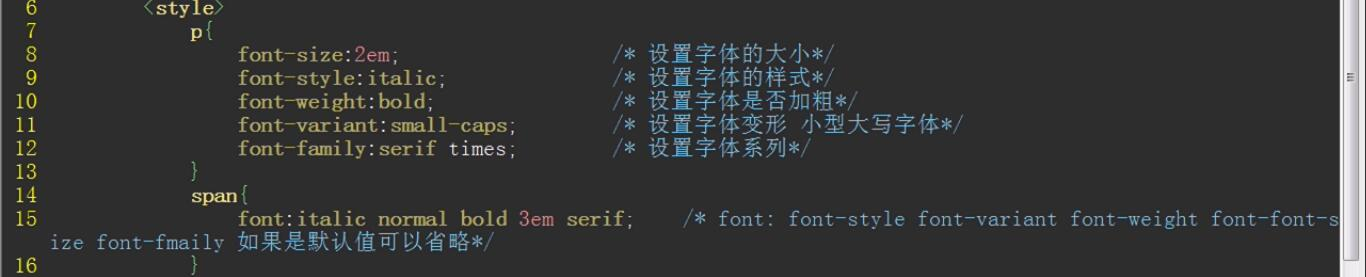 3.2 下面是字体属性的一些设置 包含 大小 样式 粗细 字体