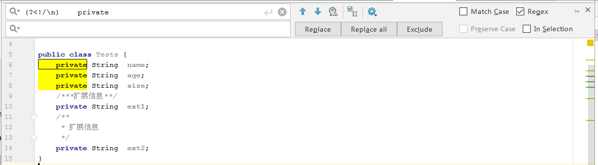例如:找到所有属性无注释的代码,idea中快捷键(ctrl+r)