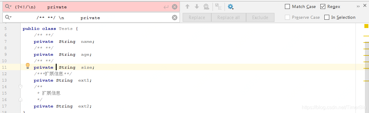 注:同样的正则也支持在idea中进行全局查找、替换,快捷键(ctrl+shift+r)