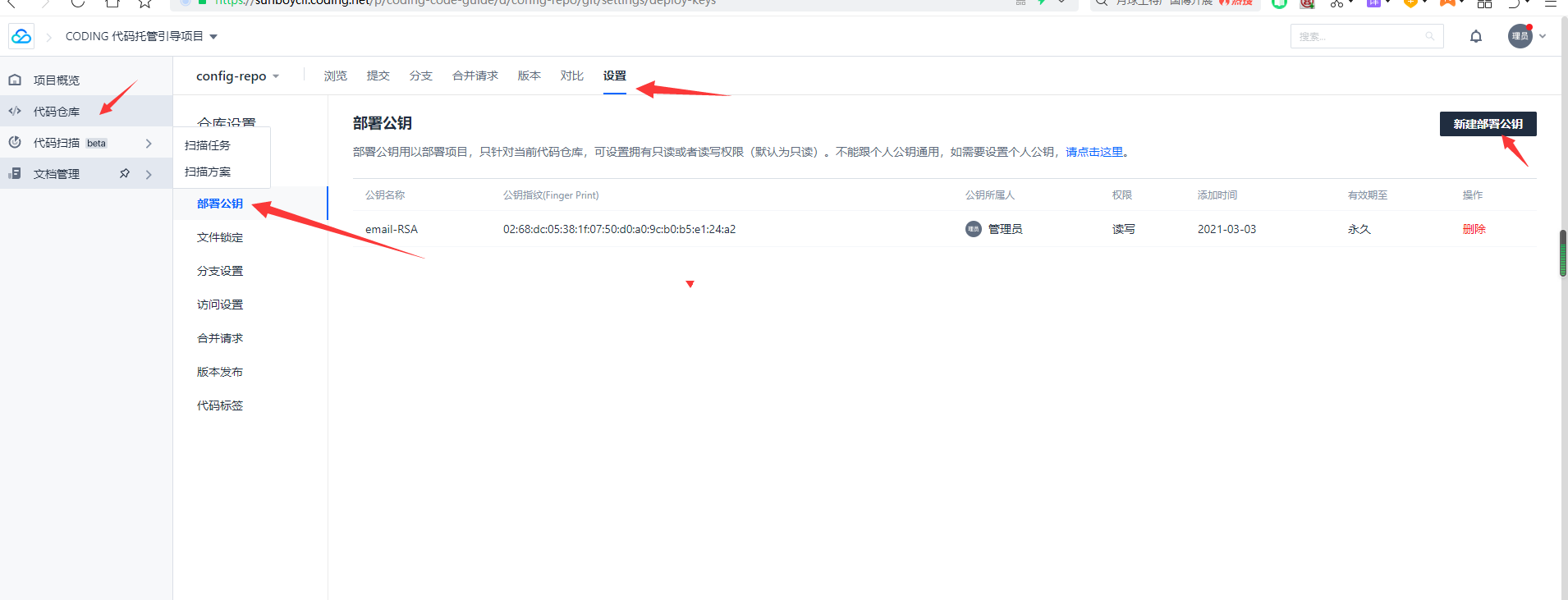 A:先在coding上,在代码仓库里先创建一个同名的项目,再点击“设置”按钮 部署公钥,再用git clone下来