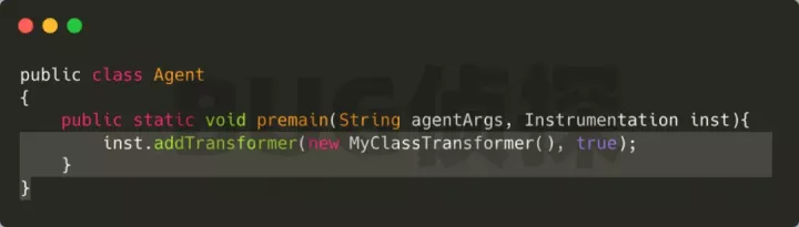 接下来,我们开始写代码,首先创建一个包含premain方法的类,其中premain方法需要严格按照下面两种格式的一种: