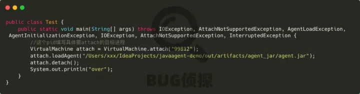 然后打包该agent,之后再编写一个Test类去attach目标进程并加载这个agent