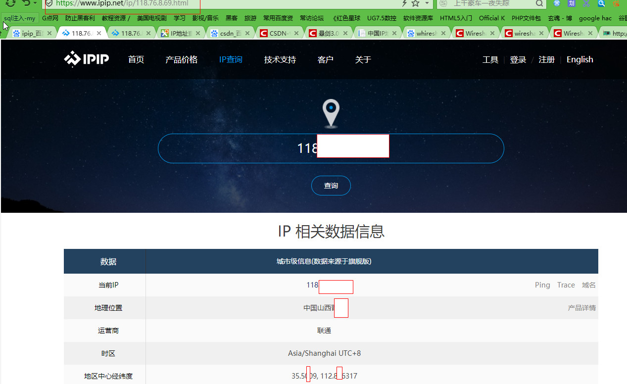 step4:在“https://www.ipip.net”中,输入ip即可查询对方地址。