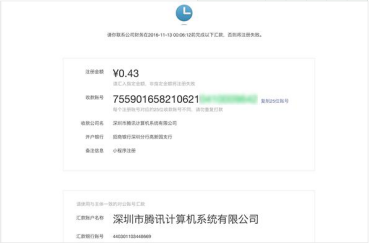 需要用公司的对公账户向腾讯公司打款来验证主体身份,打款信息在提交主体信息后可以查看到。