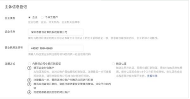 点击激活链接后,继续下一步的注册流程。请选择主体类型选择,完善主体信息和管理员信息。