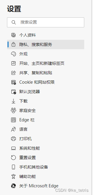 选择 隐私、搜索和服务
