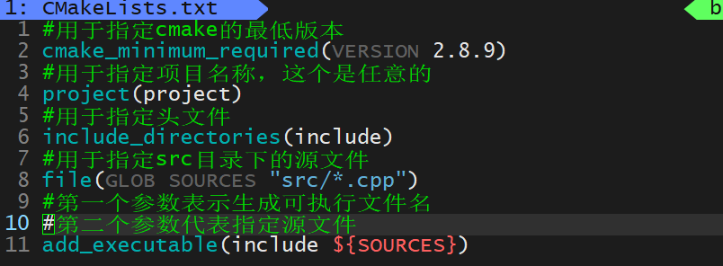 头文件在include中,源文件在src中,build则用来存放编译中生成的文件(因为会出现很多中间文件)