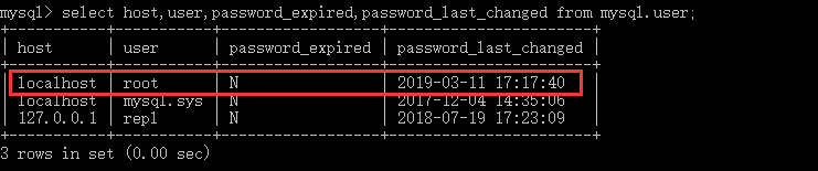select host,user,password_expired,password_last_changed from mysql.user;--查看密码的情况