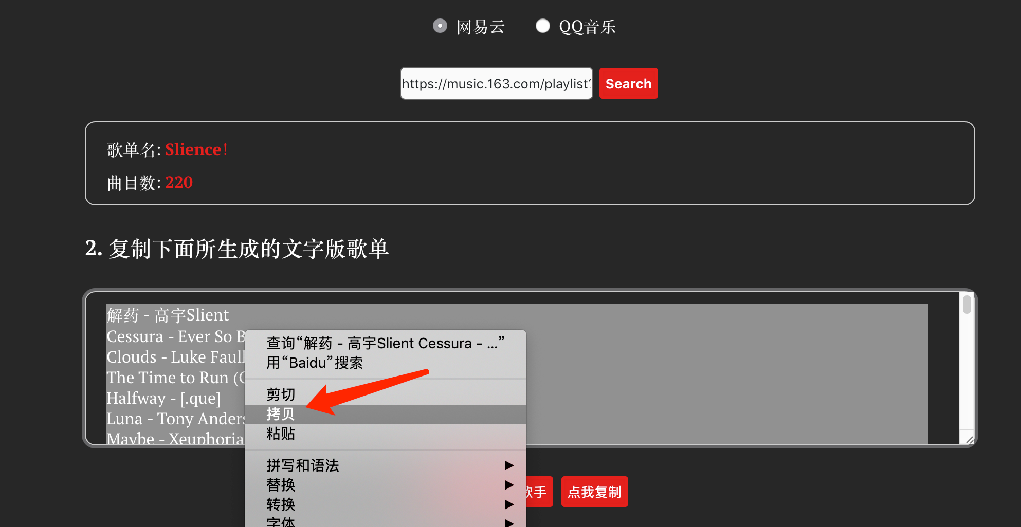 接下来有需要的小伙伴一起看教程!(这里以网易云歌单为例,QQ音乐类似)。