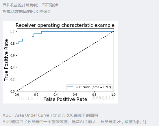 AUC(Area under Curve):Roc曲线下的面积,介于0.1和1之间。Auc作为数值可以直观的评价分类器的好坏,值越大越好。