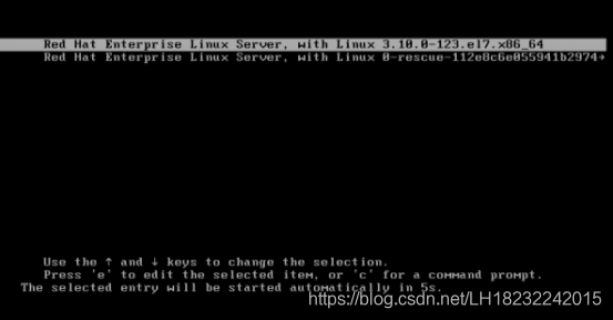 1.重启Linux系统,出现引导界面,按下键盘e键进入内核编辑界面。