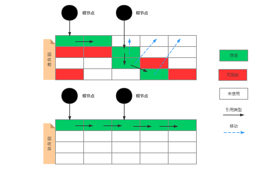 - 移动对象的同时,如果对象被其他对象引用,则还需要调整引用的地址。