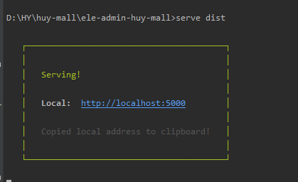 安装成功后,在终端输入serve dist,看到下图所示表示启动成功