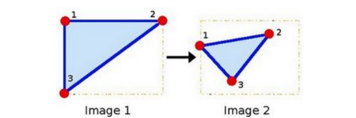 仿射变换中需要有两个三角形,两个三角形的变化决定了图像怎么变化。