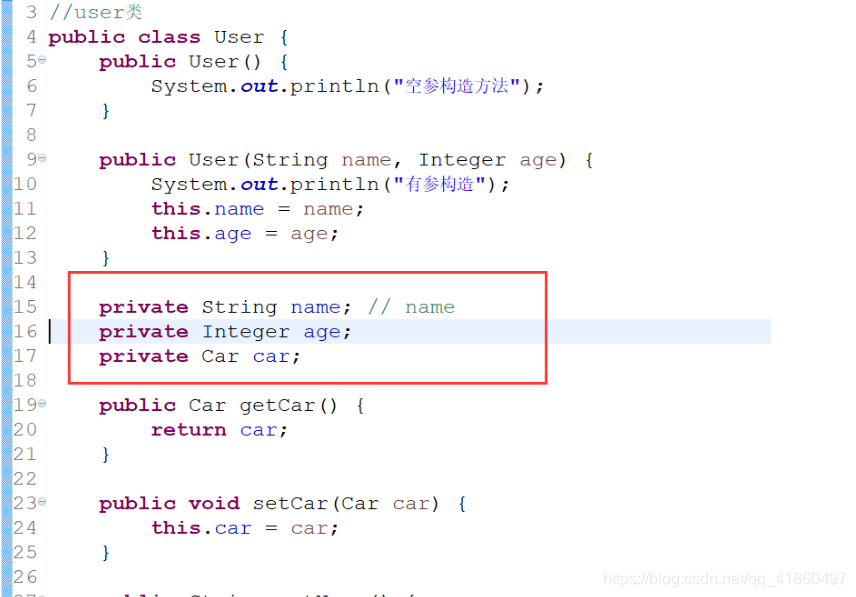 user实体类: