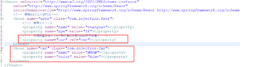 注入的配置文件的书写: