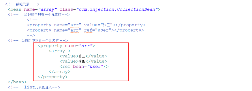 和数组注入配置文件书写有些异曲同工之处