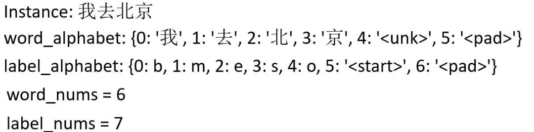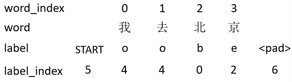 这里的label_alphabet中的b代表一个实体的开始,即begin;m代表一个实体的中部,即mid;e代表一个实体的结尾,即end;o代表不是实体,即None;<start>和<pad>分表代表这个标注label序列的开始和结束,类似于机器翻译的<SOS>和<EOS>。