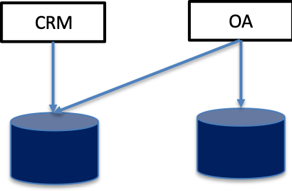 • 当CRM中的数据结构发生变化的时候,OA也要跟着变化,导致开发的过程互相依赖。