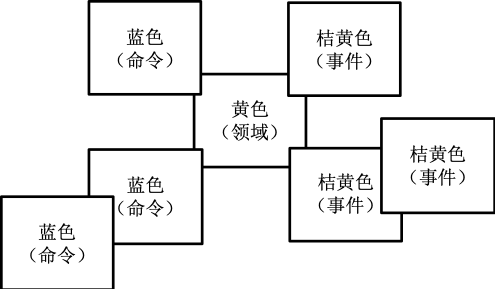 • 用蓝色的便利贴代表命令。命令的发起者可能是人,是注入系统中的外部事件,或是定时器等。