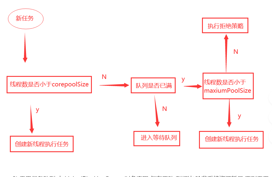 2) 有界任务队列 ,由 ArrayBlockingQueue 对象提供 , 在 创 建 ArrayBlockingQueue 对象时,可以指定一个容量。当有任务需要执行时,如果线程池中线程数小于 corePoolSize 核心线程数则创建新的线程;如果大于 corePoolSize 核心线程数则加入等待队列。如果队列已满则无法加入,在线程数小于 maxinumPoolSize 指定的最大线程数前提下会创建新的线程来执行 , 如果线程数大 于 maxinumPoolSize 最大线程数则执行拒绝策略。