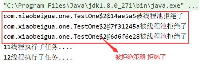 System.out.println(r+"线程池被拒绝了");
