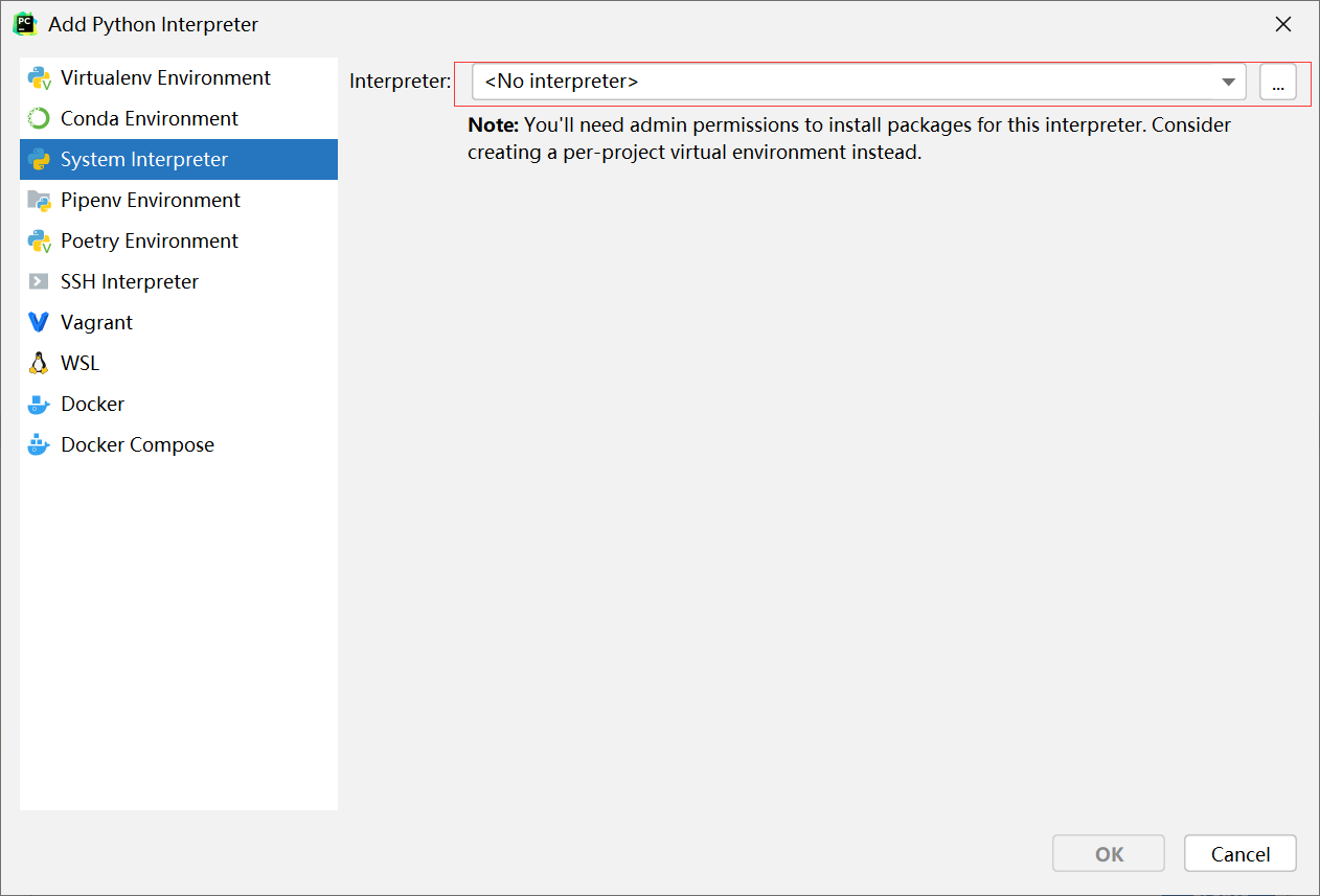 新增interpreter,选择System interpreter