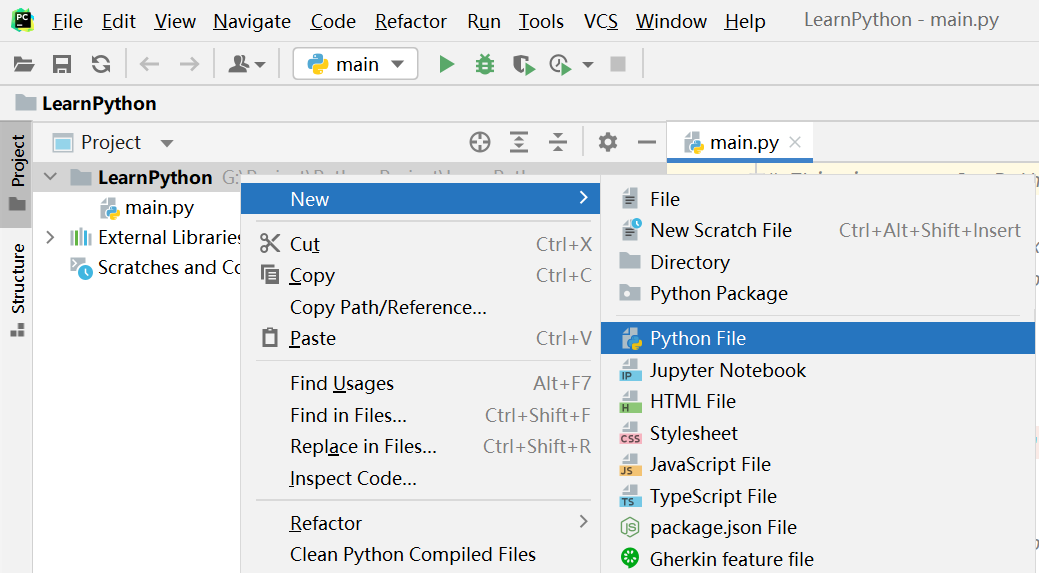 在LearnPython上右键New,选择Python File