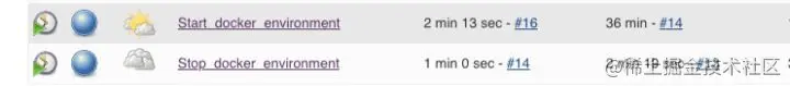 执行完之后需要强制关闭容器,防止异常退出情况。启动容器和关闭容器单独做成了两个job,方便处理环境问题
