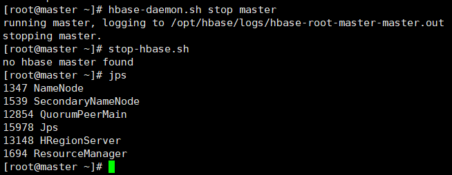 今天关闭HBase时,输入stop-hbase.sh命令一直处于等待状态。
