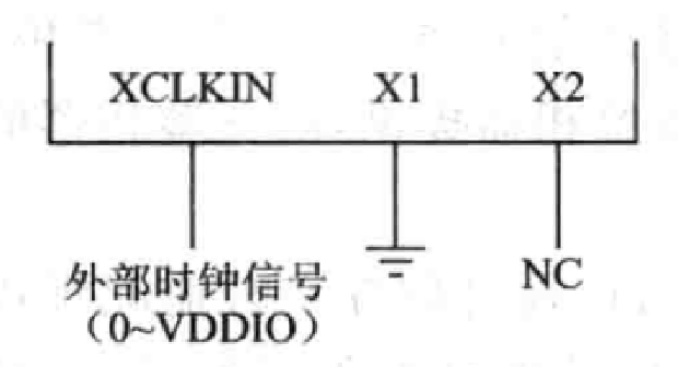 (1)外部时钟源信号接入方法有2种,分别针对的是电压为3.3V的外部时钟和1.9V的外部时钟。 (A)外部时钟信号接入方式1,即采用3.3V的外部时钟。