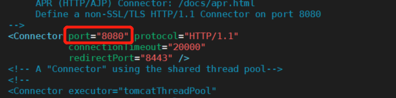 vim conf/service.xml检查一下 conf/service.xml 文件中的默认端口是否为8080,其实也可以设置成其他的,但是为了方便我这里就使用默认端口即可。