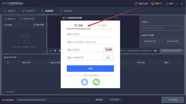 2、安装完成之后运行转换器,初次运行我们需要进行注册,软件主界面如下图,在主界面左上方有“登陆/注册”,我们可以注册一个账号。
