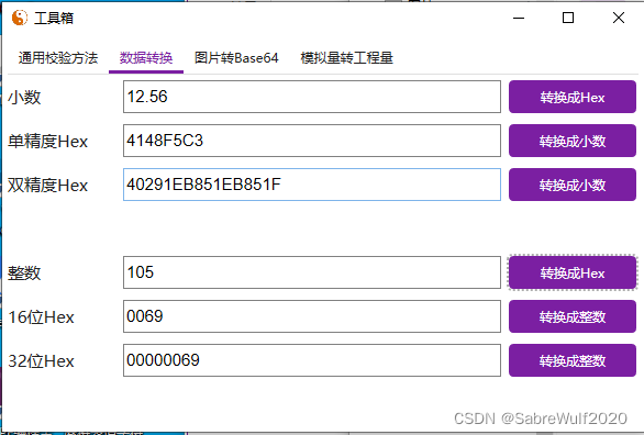 2.数据转换包含整数和小数与16进制HEX的转换。