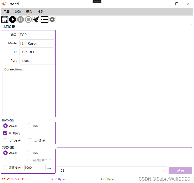 3.接收发送编码方式同时支持ASCII和HEX方式