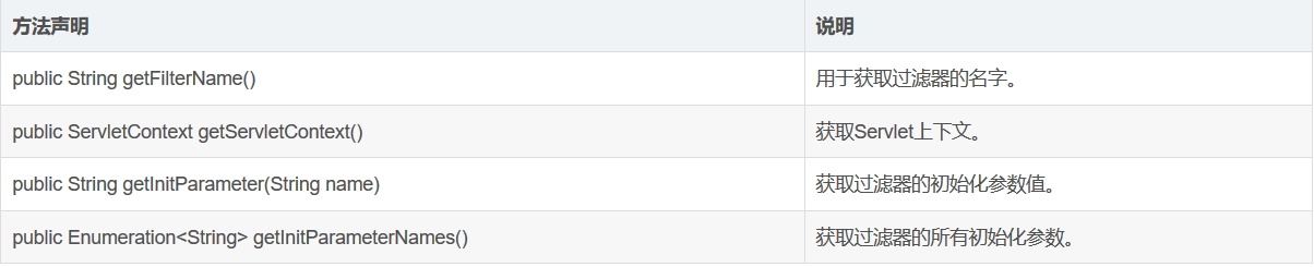 <filter>指定一个过滤器。<filter-name>用于为过滤器指定一个名字,该元素的内容不能为空。<filter-class>元素用于指定过滤器的完整的限定类名。<init-param>元素用于为过滤器指定初始化参数,它的子元素<param-name>指定参数的名字,<param-value>指定参数的值。- 在过滤器中,可以使用