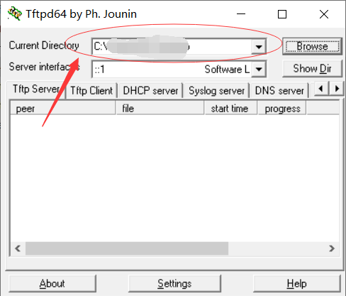 保存环境变量后,打开tftp软件,设置要烧写文件所在的目录(如下图):