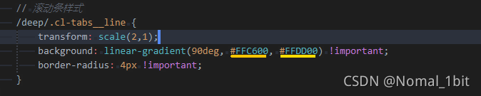 在使用各家组件库时 例如tabs 在内部组件设定好了 跟随滚动的值 如果直接修改组件的宽度,则会导致偏移值不正确,但是用 scale 缩放 (x,y) 即可让元素放大至想要的效果