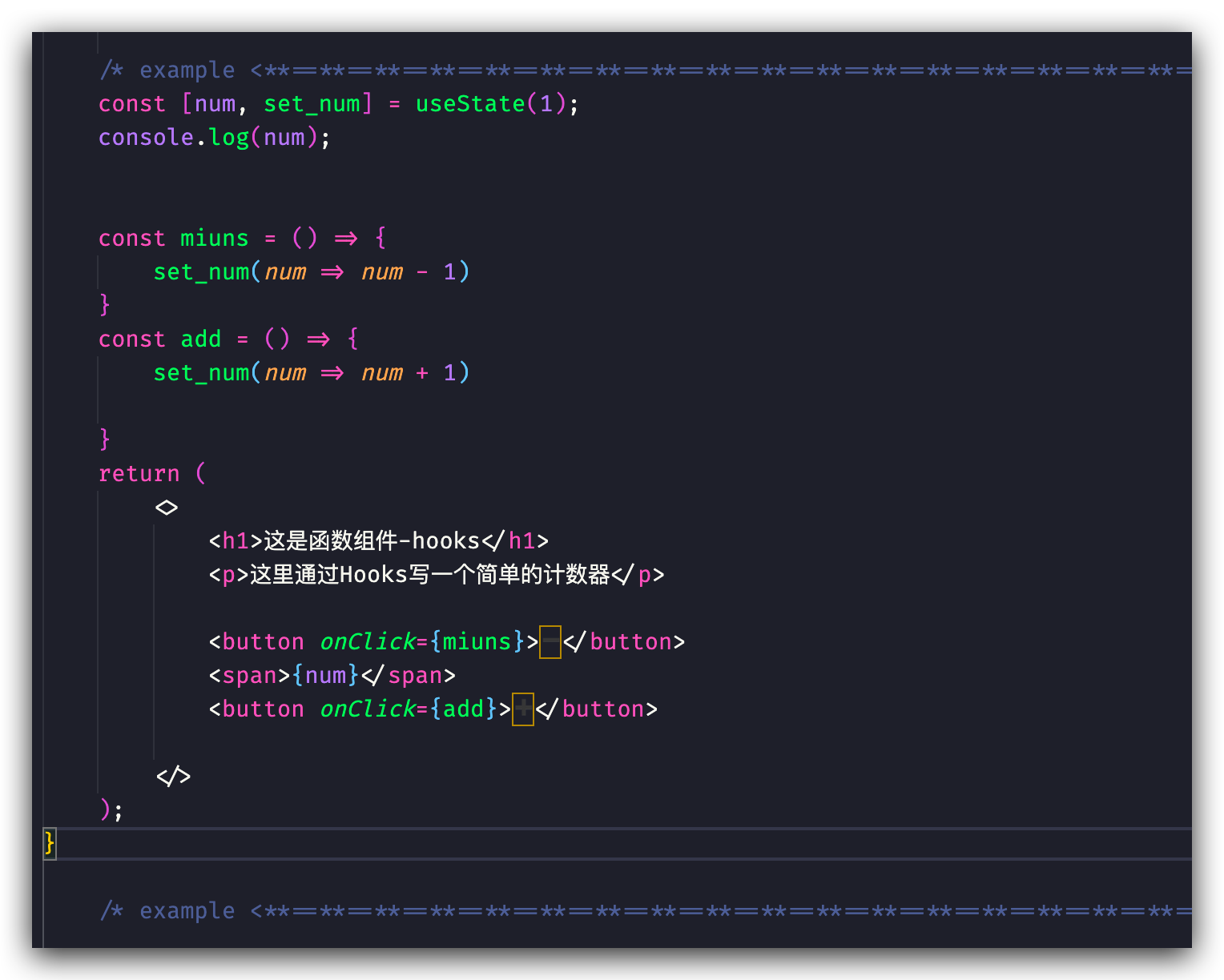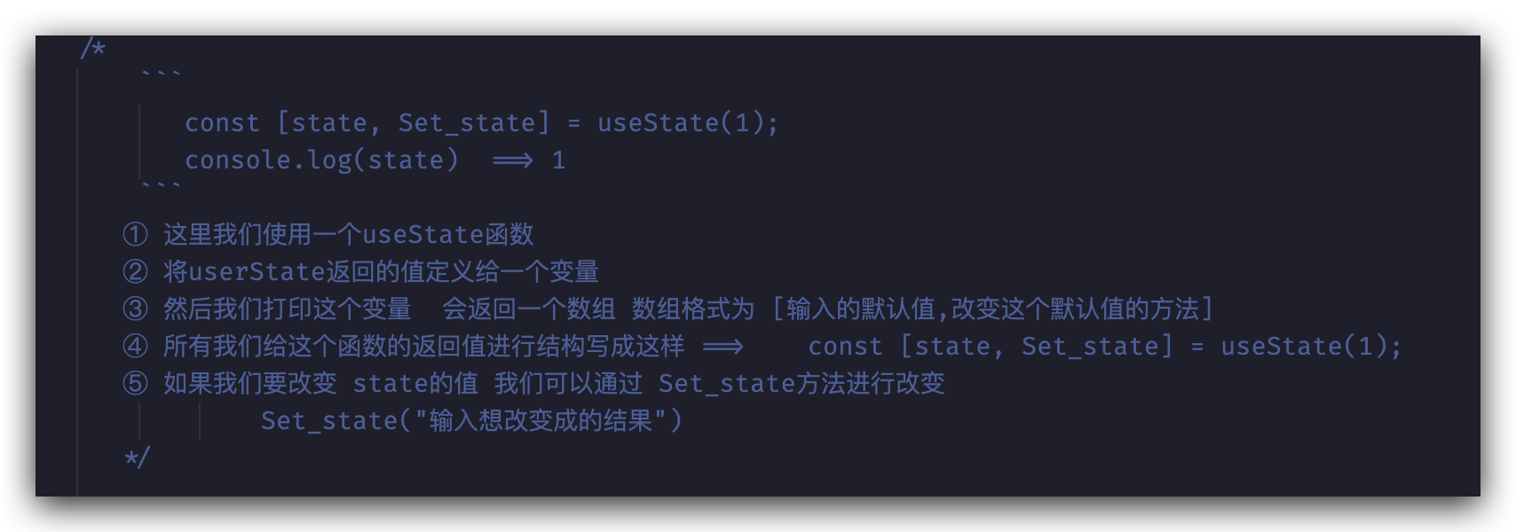 ④ 所有我们给这个函数的返回值进行结构写成这样 ==> const [state, Set_state] = useState(1);