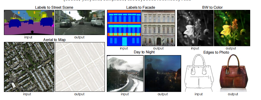这是加里福利亚大学在CVPR 2017上发表的一篇论文,讲的是如何用条件生成对抗网络实现图像到图像的转换任务。