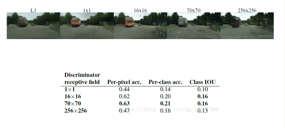 在3.4节中,我们展示了远比图片尺寸小的N仍然可以获得高质量的结构。这是有益的,因为更小的PatchGAN参数更少,运行得更快,并且可以应用到任意大的图片上。