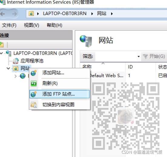 2、Internet Information Services-FTP服务器打开以及IIS相关服务功能打开