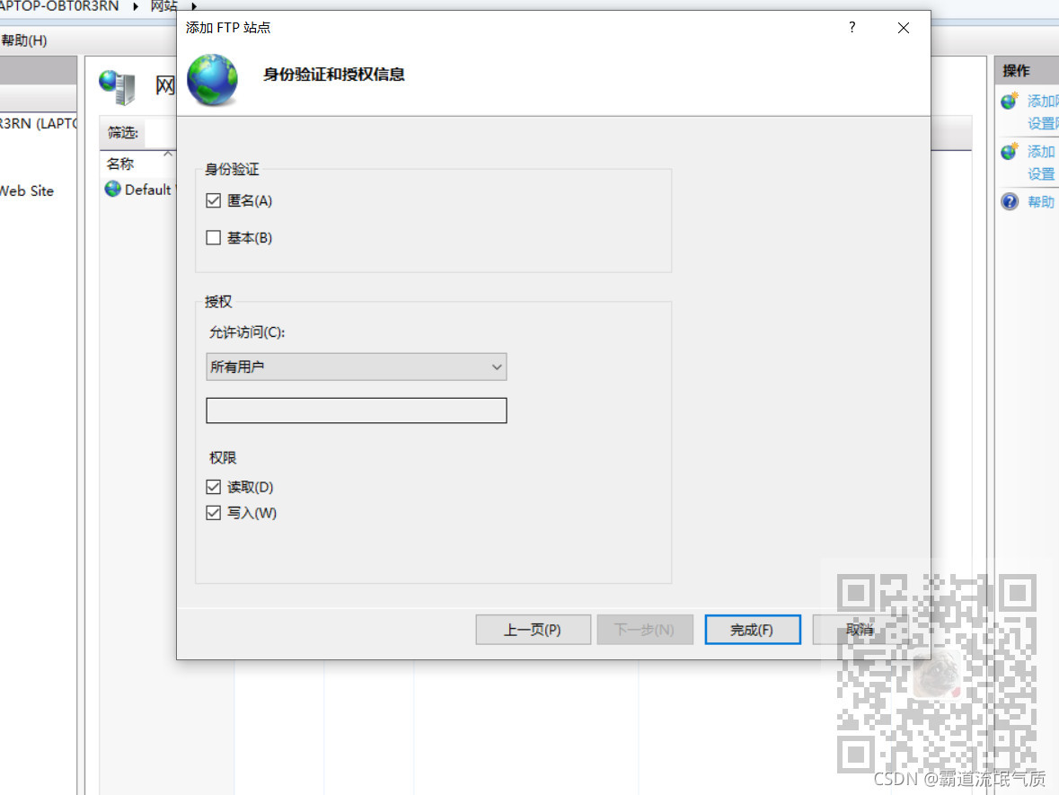 8、点击下一步,设置身份验证为匿名,给予所有用户读写的权限
