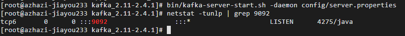 -daemon以后台进程启动kafka,默认是9092端口,创建topic,测试生产和消费消息没问题