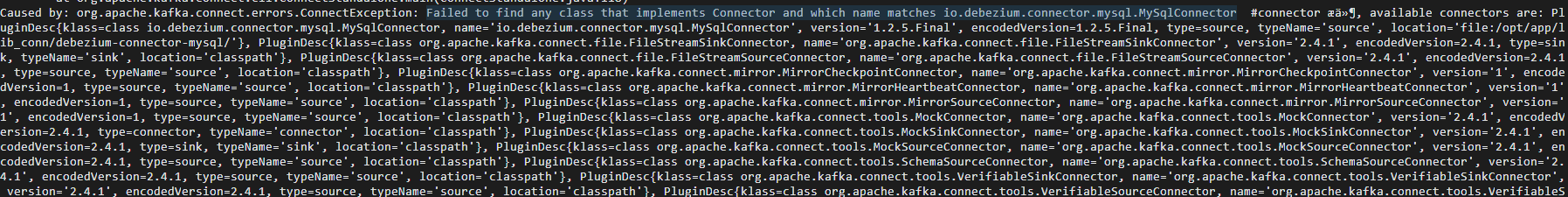 Failed to find any class that implements Connector and which name matches io.debezium.connector.mysql.MySqlConnector