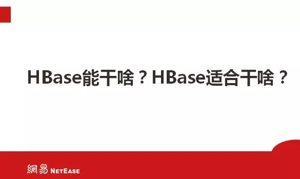 今天主要从四个方面和大家分享HBase,HBase是整个Hadoop里面非常重要的组件,首先讲一下HBase在大数据领域的定位,第二个方面就是网易在HBase方面都有哪些应用场景,接下来讲一下HBase中经常会出现的RIT问题,以及用HBCK解决问题的套路。最后讲一下我们遇到HBase问题的一些排查思路,在遇到一些相似的问题应该应用哪种方式去解决。