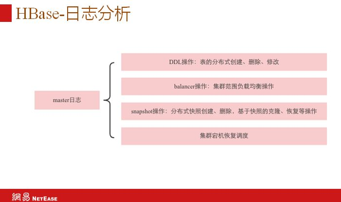 监控只会告诉你发生问题但是不能告诉你为什么。这时就需要日志分析,master日志负责DDL操作:表的分布式创建、删除、修改,balance操作:集群范围负载均衡,snapshot操作,分布式快照创建、删除等,集群宕机恢复调度。Regionserver日志,region打开关闭操作,用户读写请求记录,region flush操作等。如果实在解决不了就只能网络求助,通过搜索引擎,技术论坛群组或者社区邮件等。