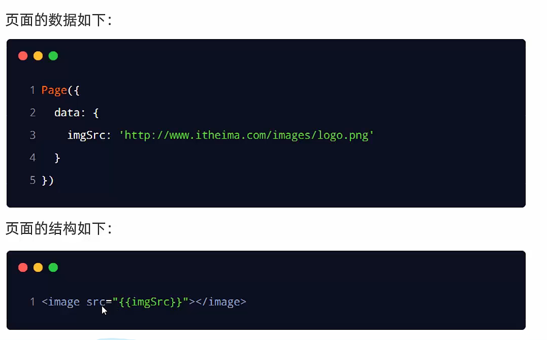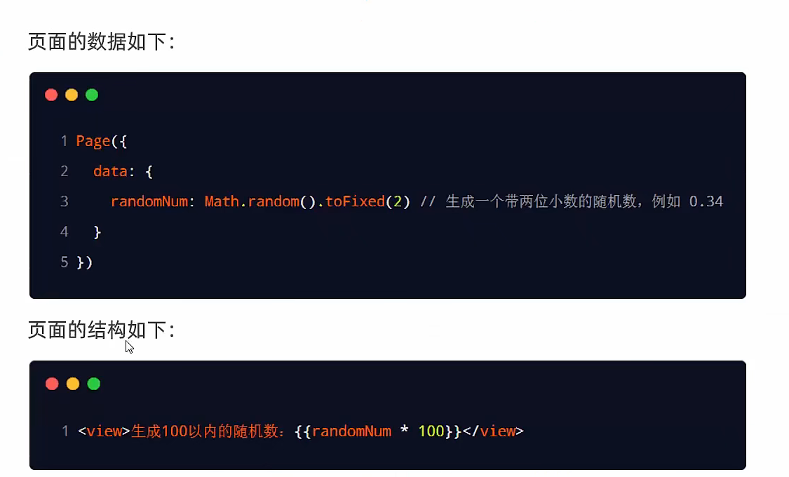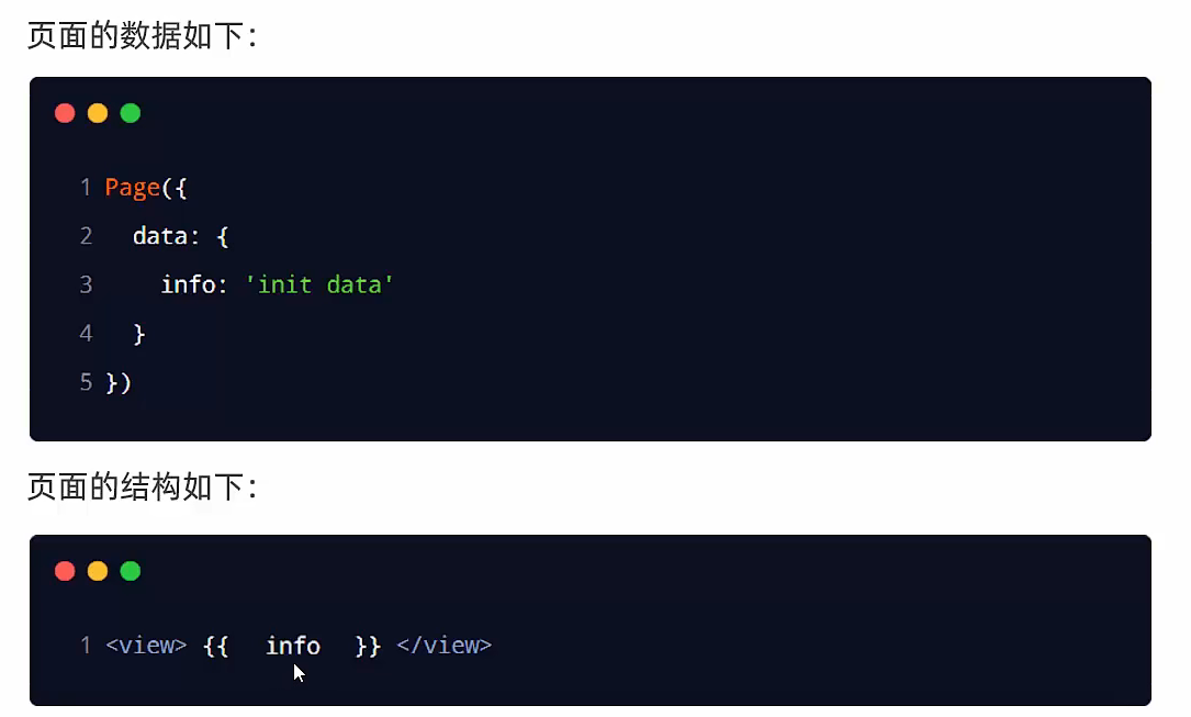 <view>{{要绑定的数据名称}}</view>