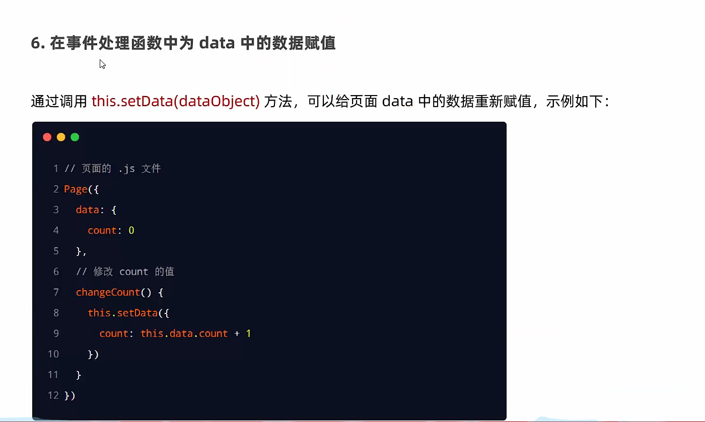 (1)在data中定义数据 (2)在WXML中使用数据